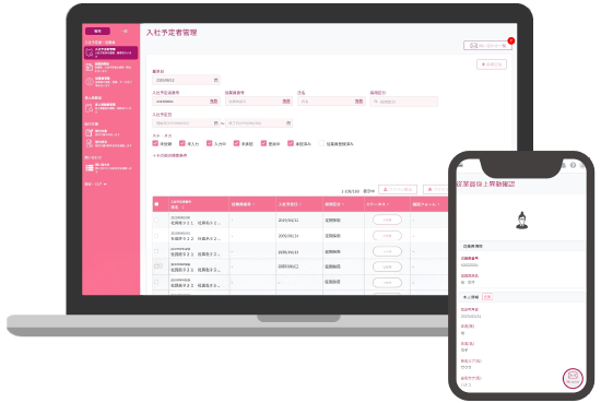 管理者画面は、パソコンの利用を前提としています。従業員画面は、パソコンとスマホの利用が可能です。