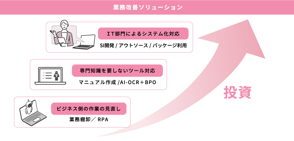 お客さまのビジネス背景から課題を洗い出し、その現状にあったソリューションをご提案します。