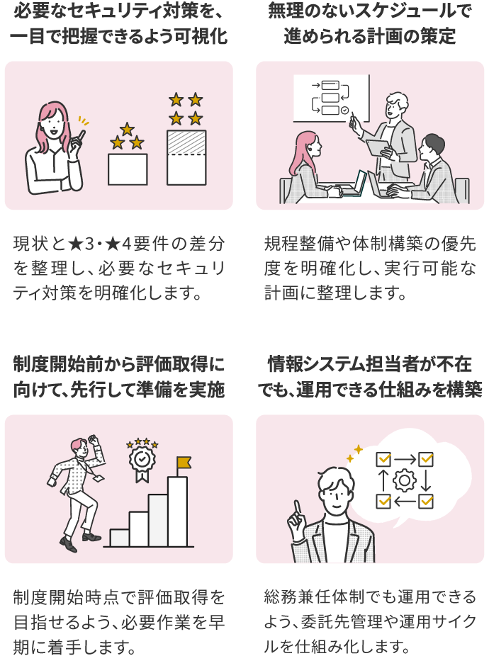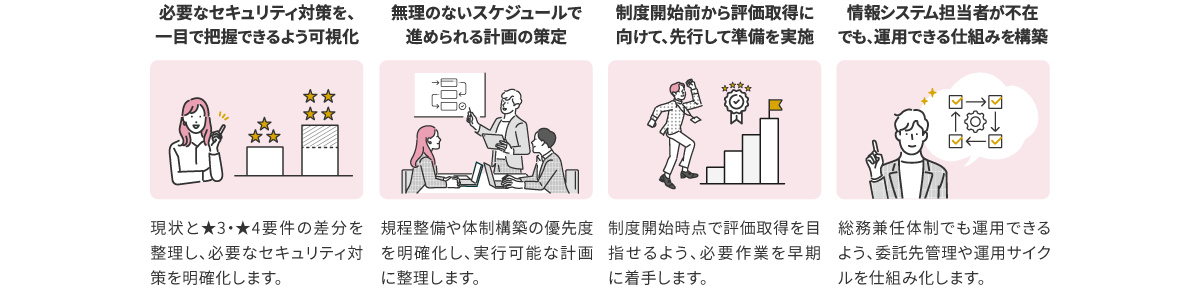 ★3・★4評価の取得および評価の継続に必要な仕組みの整備を支援します。